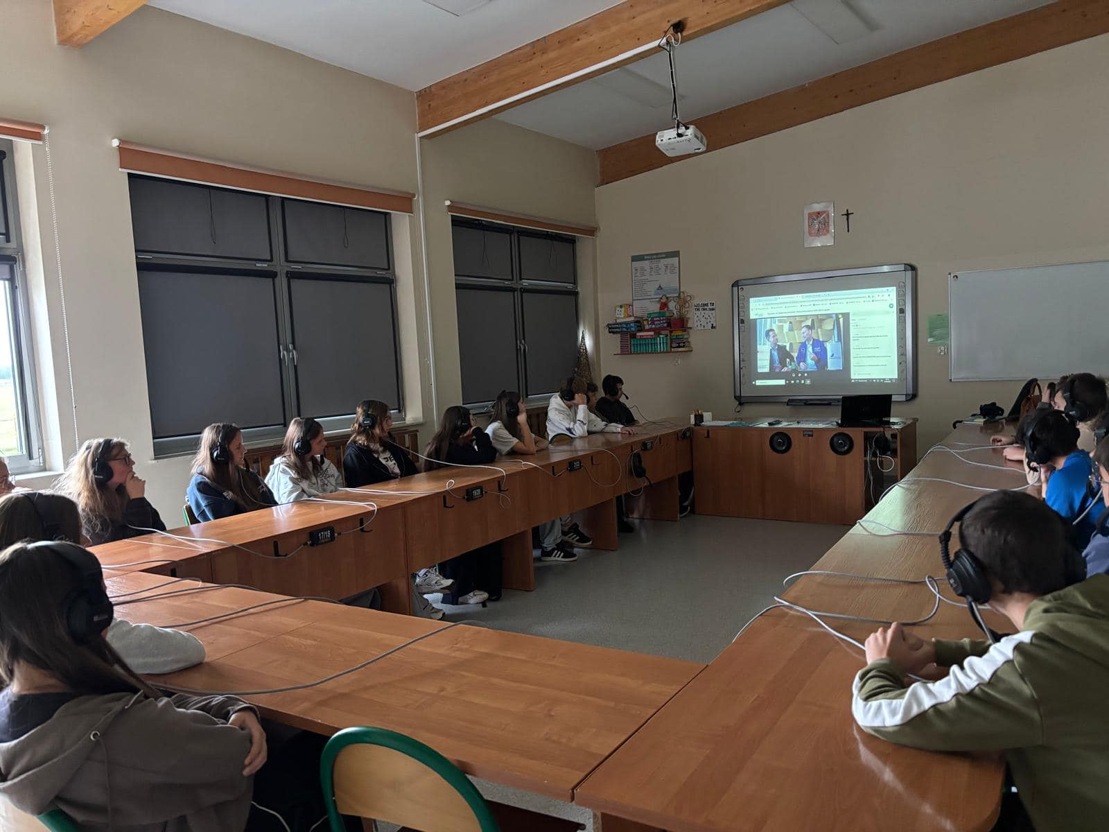 Uczniowie klasy 8a wzięli udział w spotkaniu online z dr. Sławoszem Uznańskim-Wiśniewskim, polskim astronautą i naukowcem, który był gościem spotkania dla uczniów w ramach EXPO 2025 w Japonii.